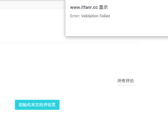 当点击文章页面底部的 初始化本文的评论页 按钮时,页面会弹出错误信息:Error:Validation Failed 信息。