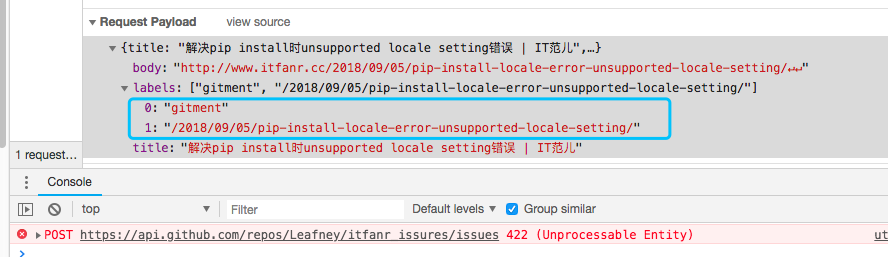 一个是文章标题的路径: window.location.pathname 值,如 /2018/09/05/pip-install-locale-error-unsupported-locale-setting/ ;另一个是定值 gitment 。