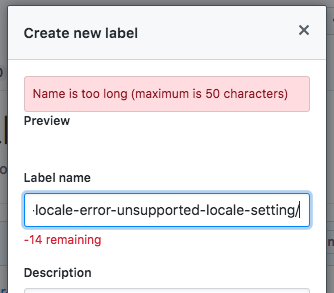 而由于 github 中 Issues 的 label 长度限制为最大 50 个字符,当 文章标题长度过长时,该label就会生成失败,而导致初始化错误,弹出 Validation Failed 的提示。