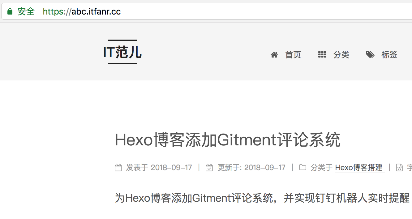 显示小绿锁却提示404NotFound 上篇文章末尾,我为二级域名 gogit.itfanr.cc 的Nginx配置中指定了证书目录,网站也正常应用上了https: