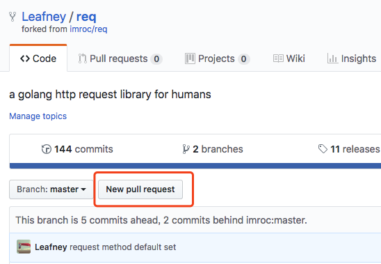 回到我fork过来的项目主页面,点击 New pull request 按钮: