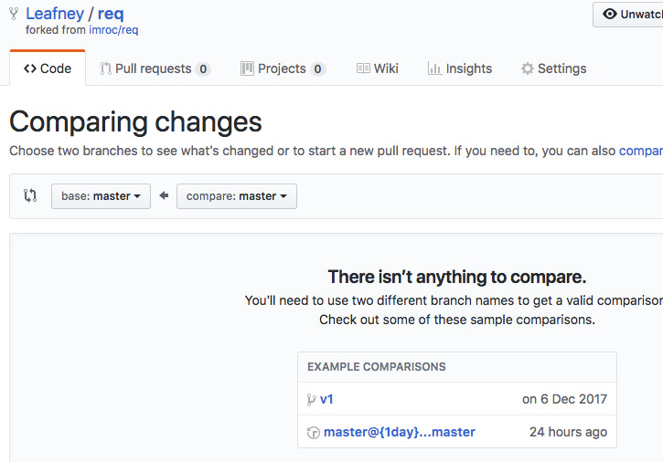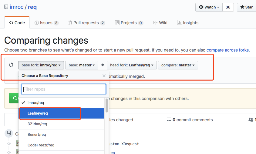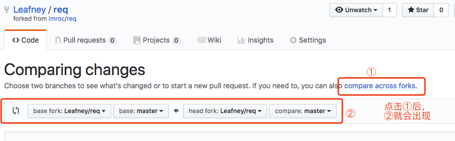 此时,点击右上角的 compare across forks ,下面就会出现可选择的选框: