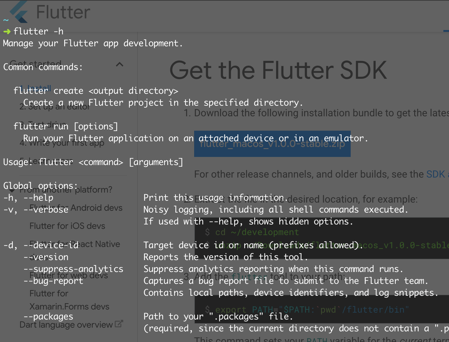 ➜ flutter doctor Doctor summary (to see all details, run flutter doctor -v): [✓] Flutter (Channel stable, v1.0.0, on Mac OS X 10.14.3 18D109, locale zh-Hans-CN) [!] Android toolchain - develop for Android devices (Android SDK 28.0.3) ✗ Android licenses not accepted. To resolve this, run: flutter doctor --android-licenses [!] iOS toolchain - develop for iOS devices (Xcode 10.1) ✗ libimobiledevice and ideviceinstaller are not installed. To install with Brew, run: brew update brew install --HEAD usbmuxd brew link usbmuxd brew install --HEAD libimobiledevice brew install ideviceinstaller ✗ ios-deploy not installed. To install with Brew: brew install ios-deploy ✗ CocoaPods not installed. CocoaPods is used to retrieve the iOS platform side's plugin code that responds to your plugin usage on the Dart side. Without resolving iOS dependencies with CocoaPods, plugins will not work on iOS. For more info, see https://flutter.io/platform-plugins To install: brew install cocoapods pod setup [✓] Android Studio (version 3.3) ✗ Flutter plugin not installed; this adds Flutter specific functionality. ✗ Dart plugin not installed; this adds Dart specific functionality. [✓] VS Code (version 1.31.1) [!] Connected device ! No devices available