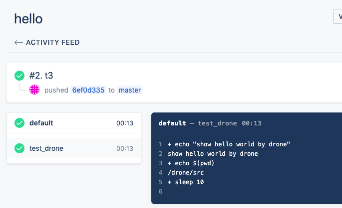 当执行git提交后,Drone容器中的部分日志记录如下: